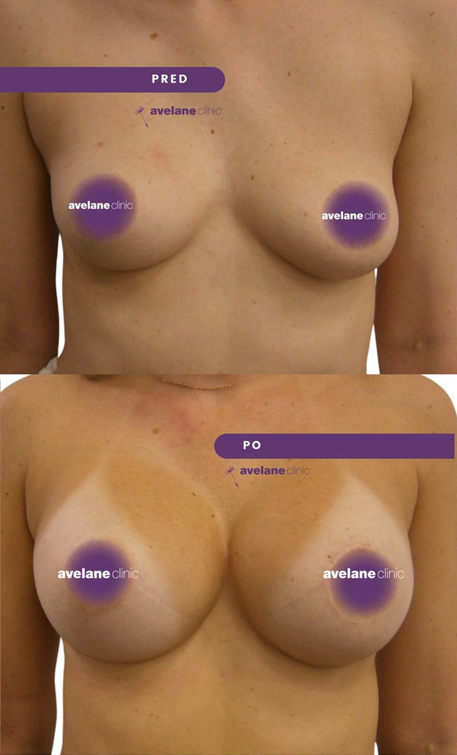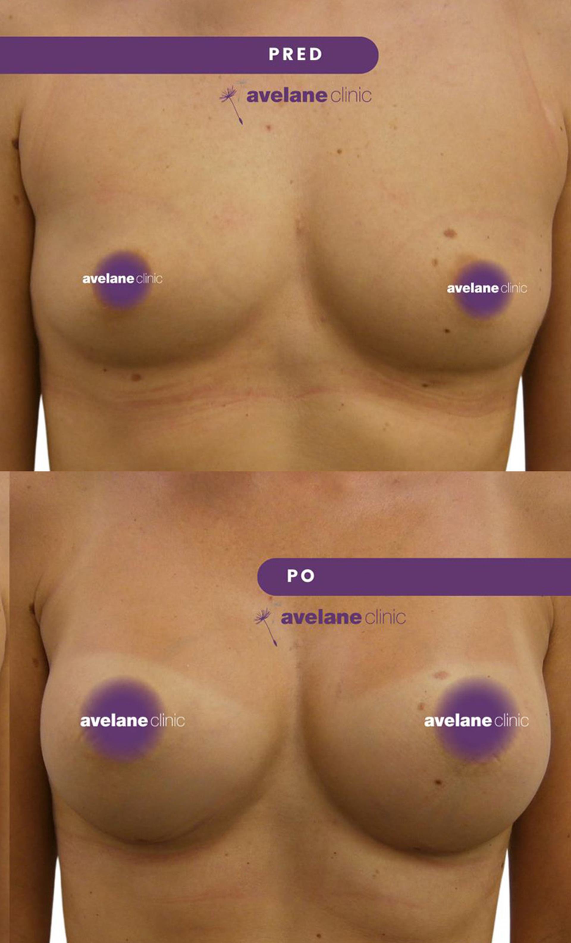 Pred a po úprave pŕs – zdokonalenie kontúr a proporcií na Avelane clinic