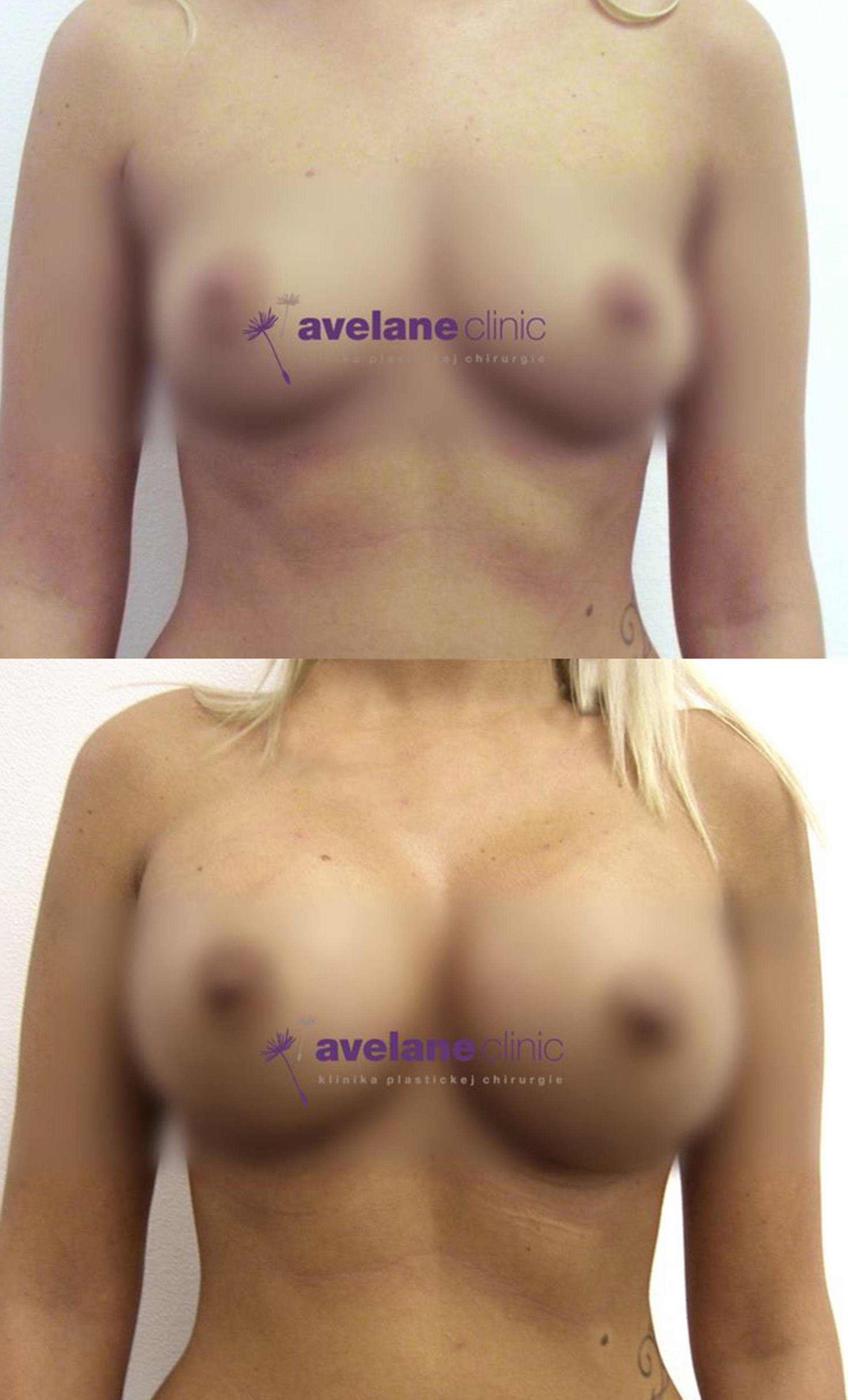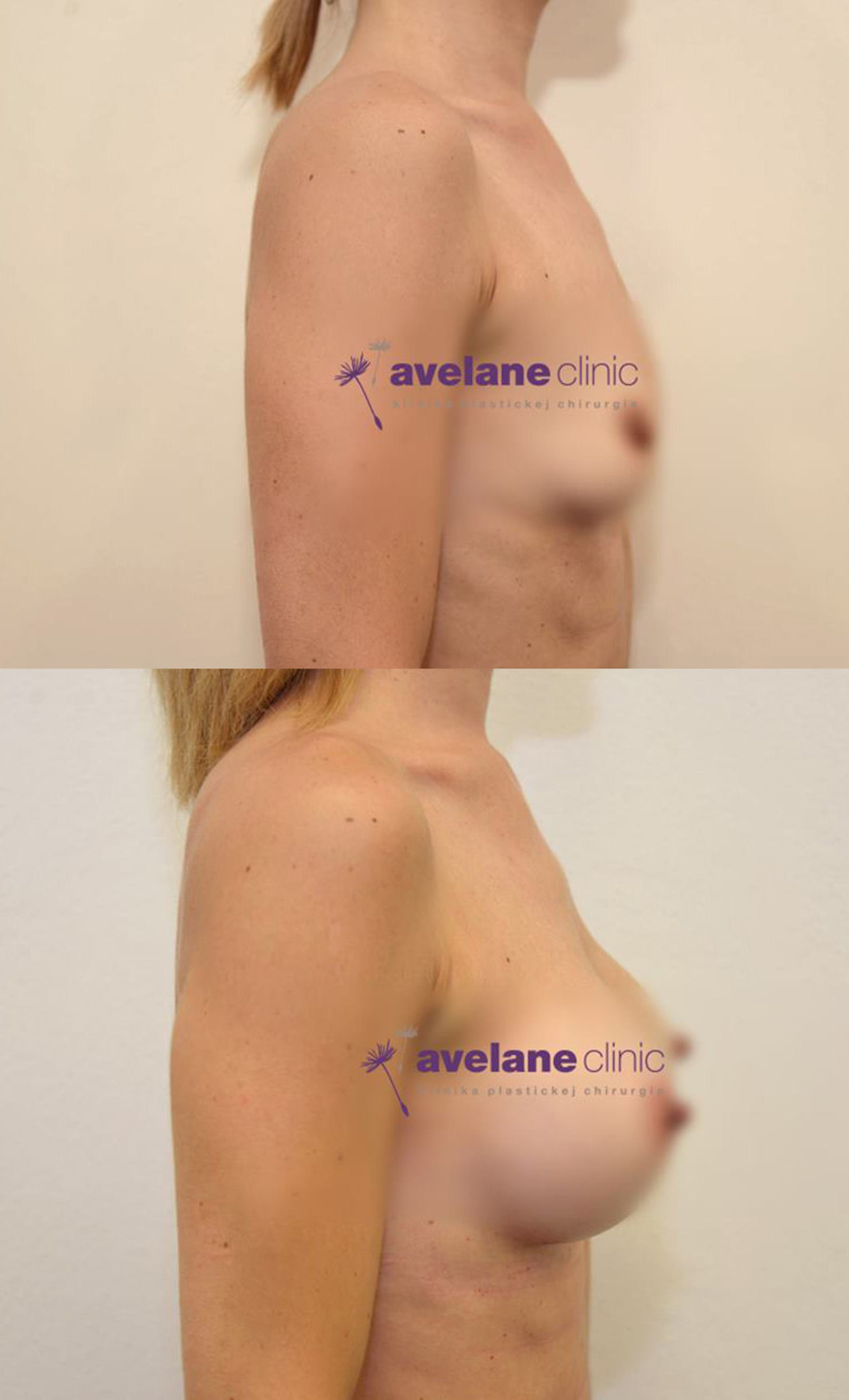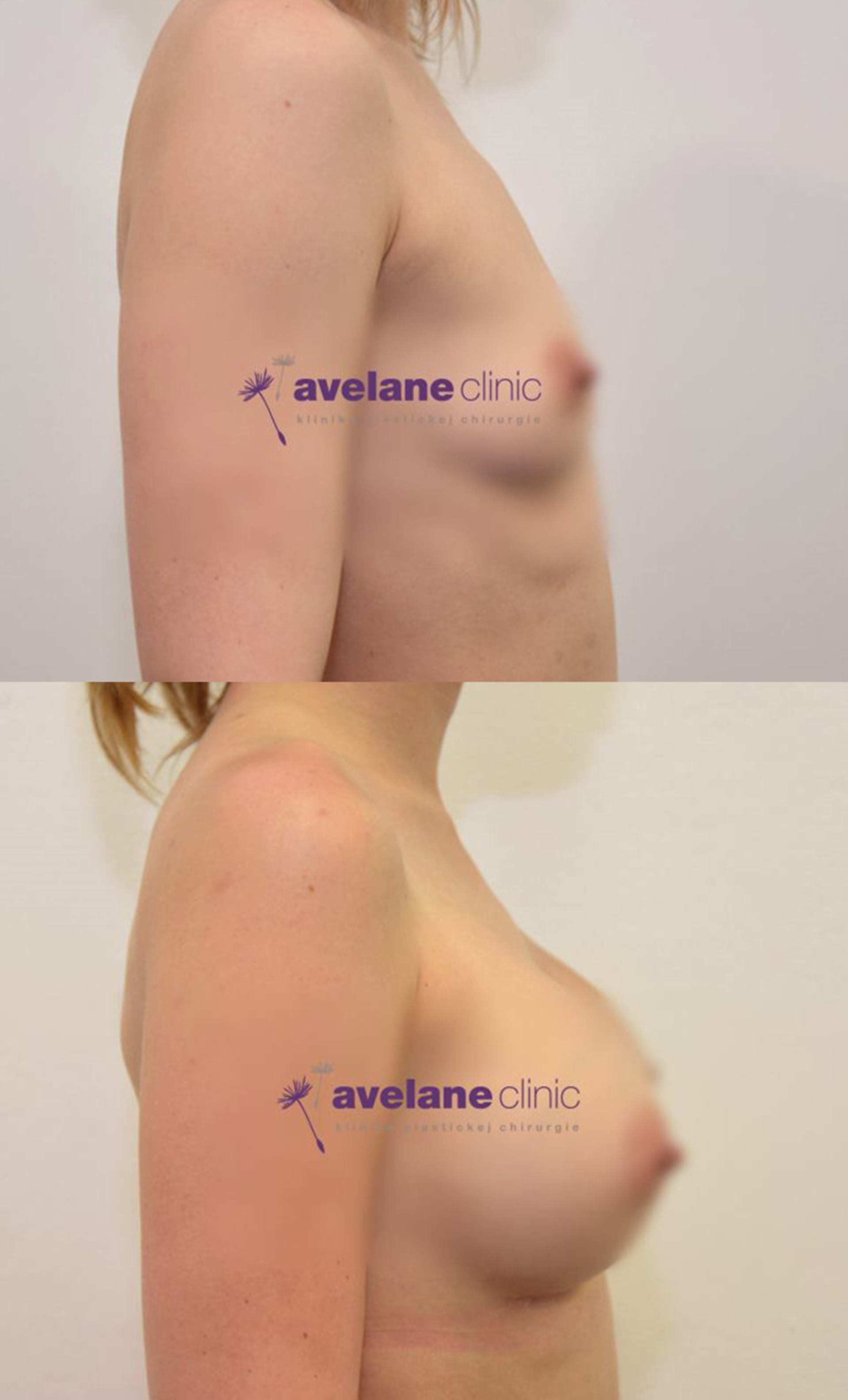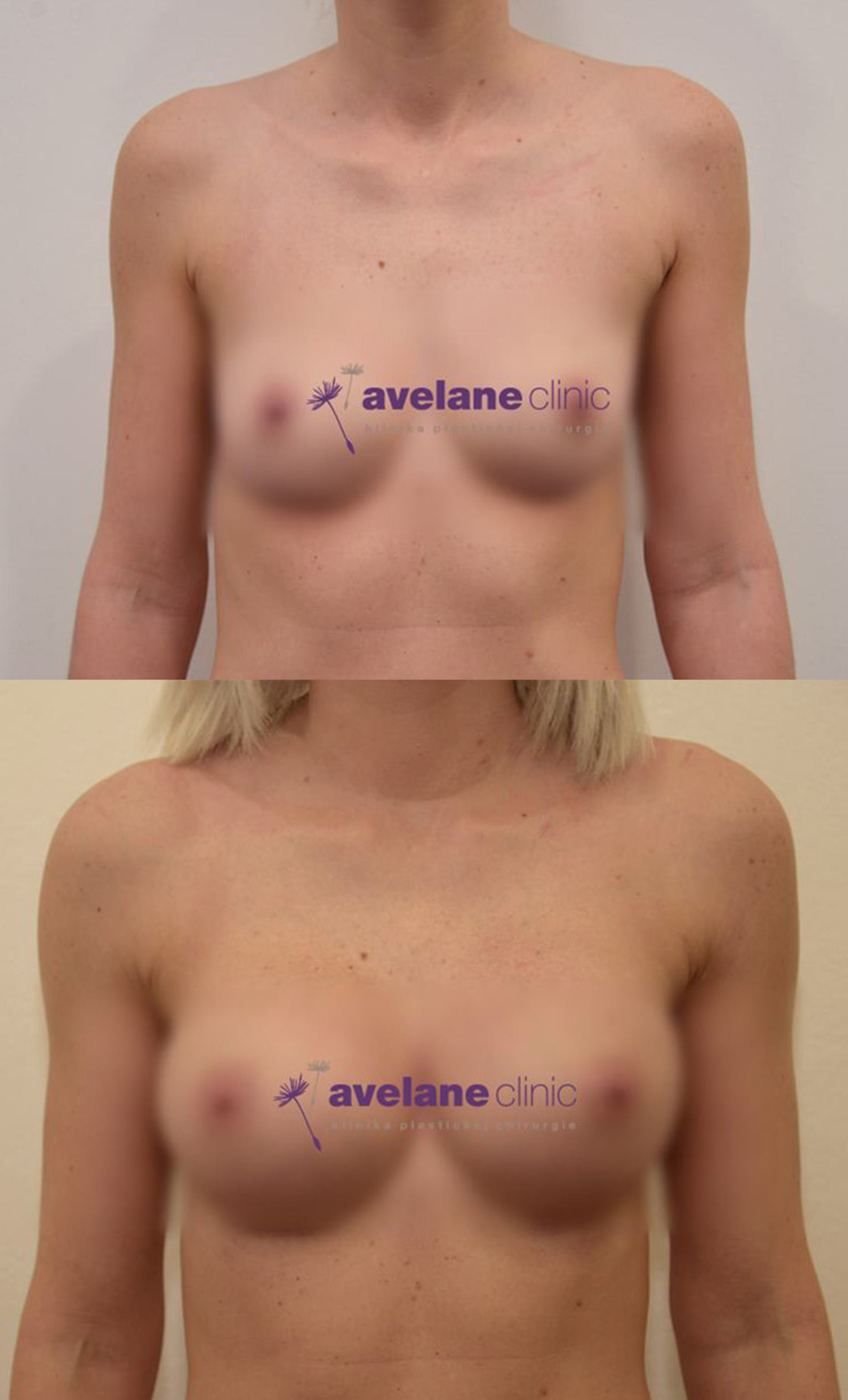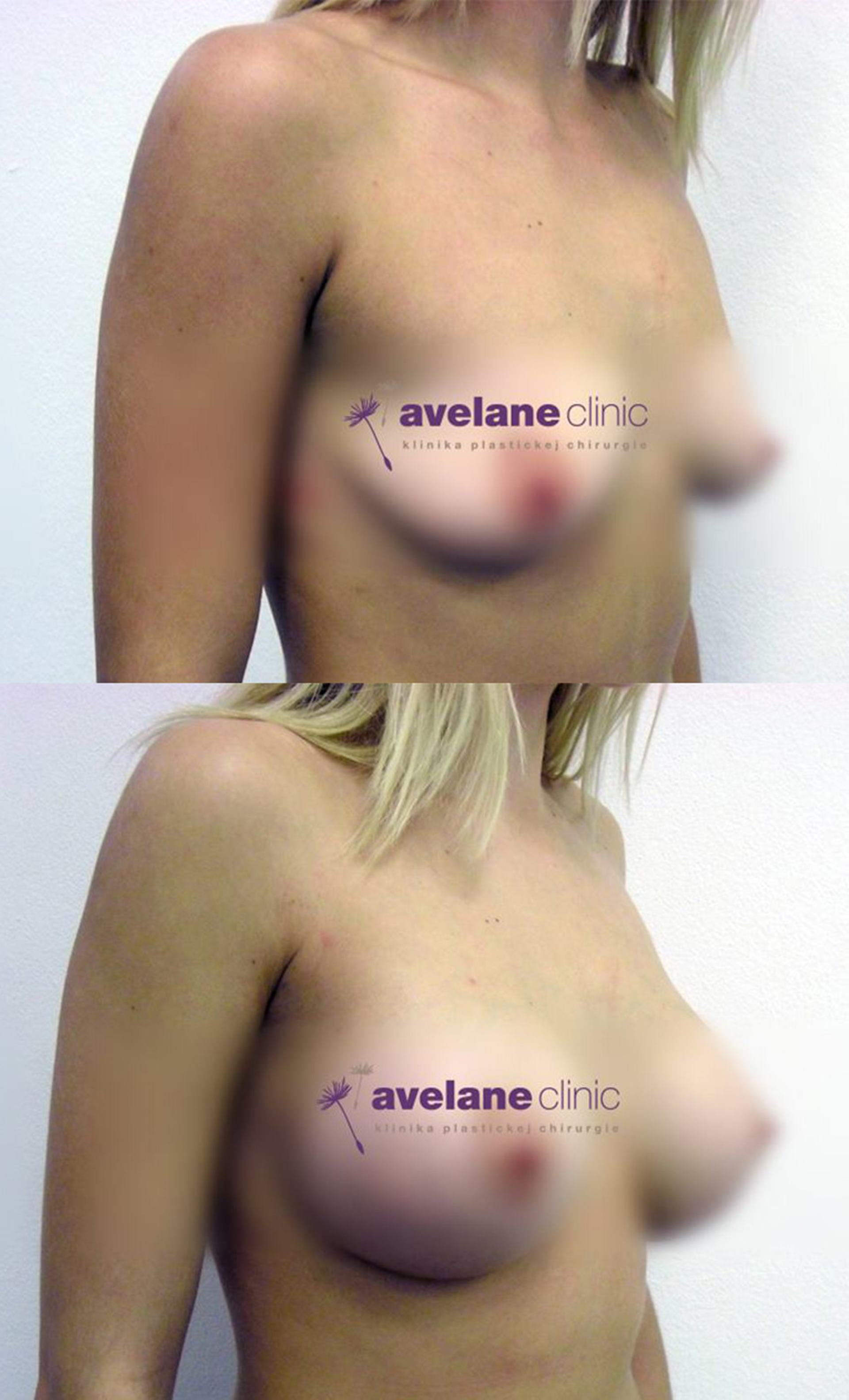 Pred a po úprave pŕs implantátmi – jemná úprava tvaru na Avelane clinic