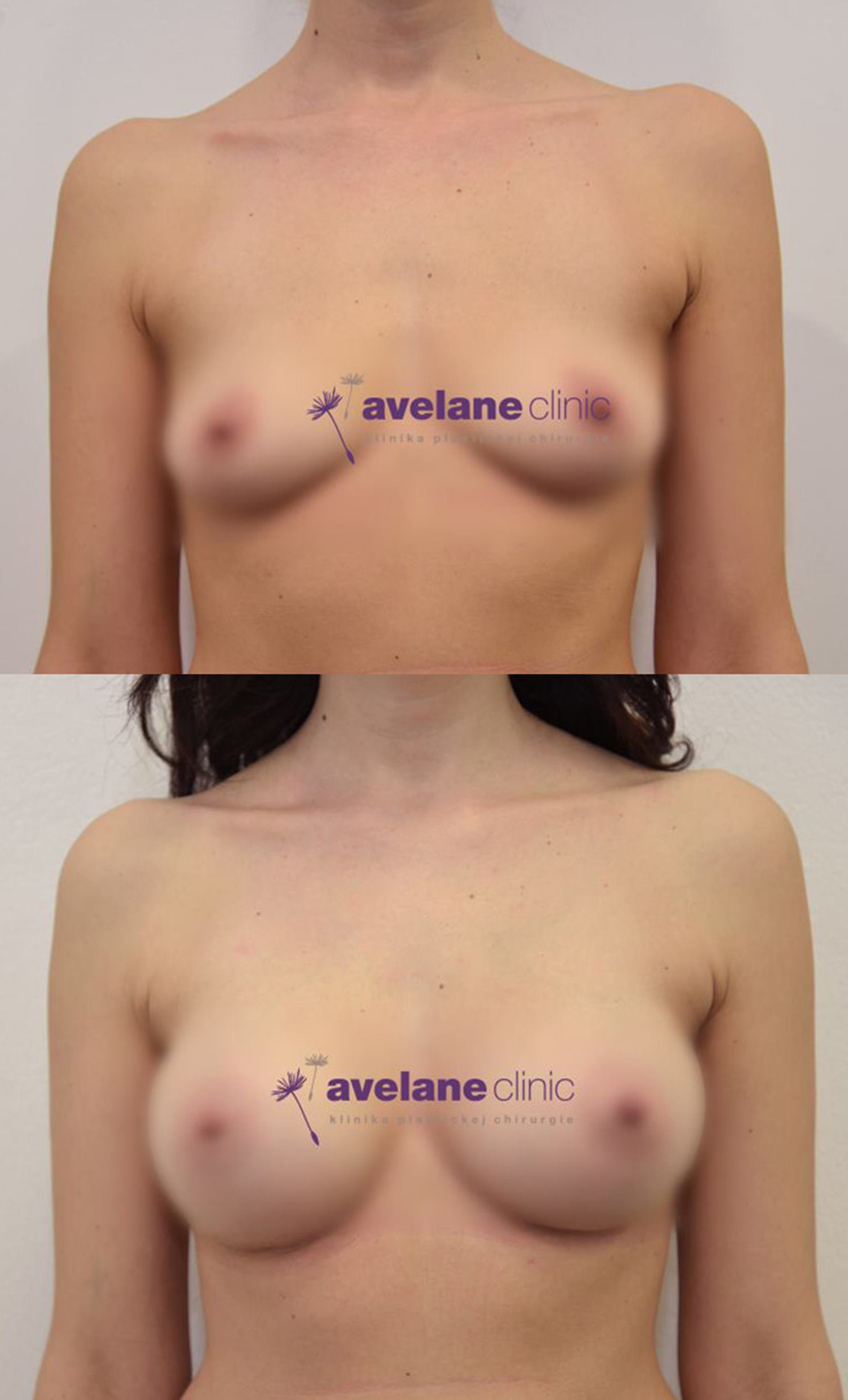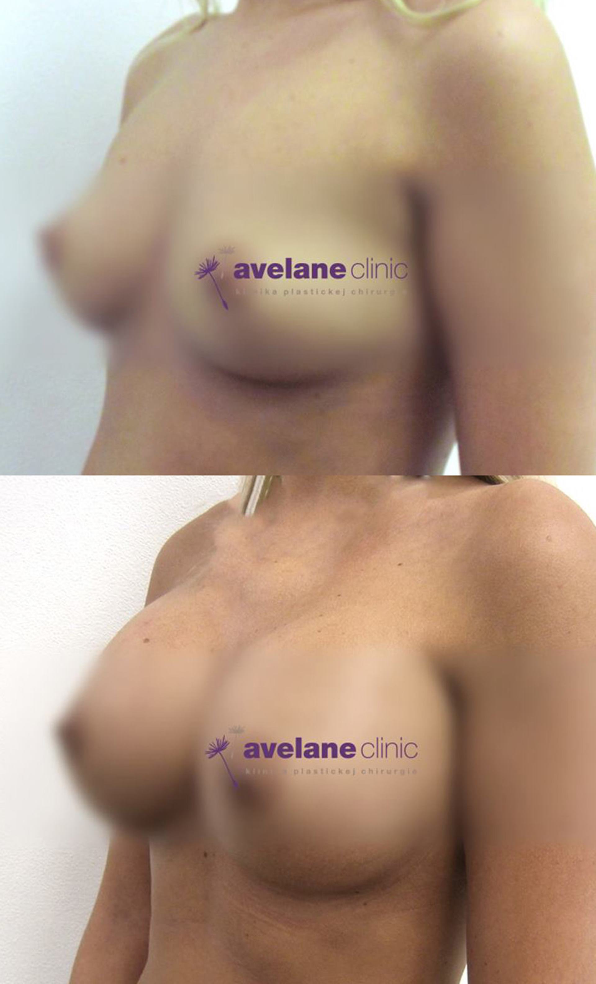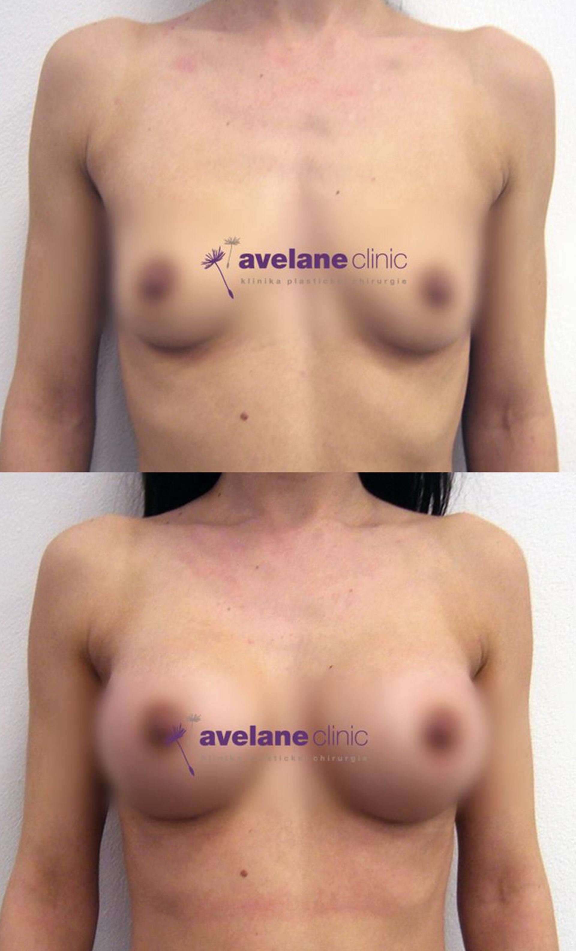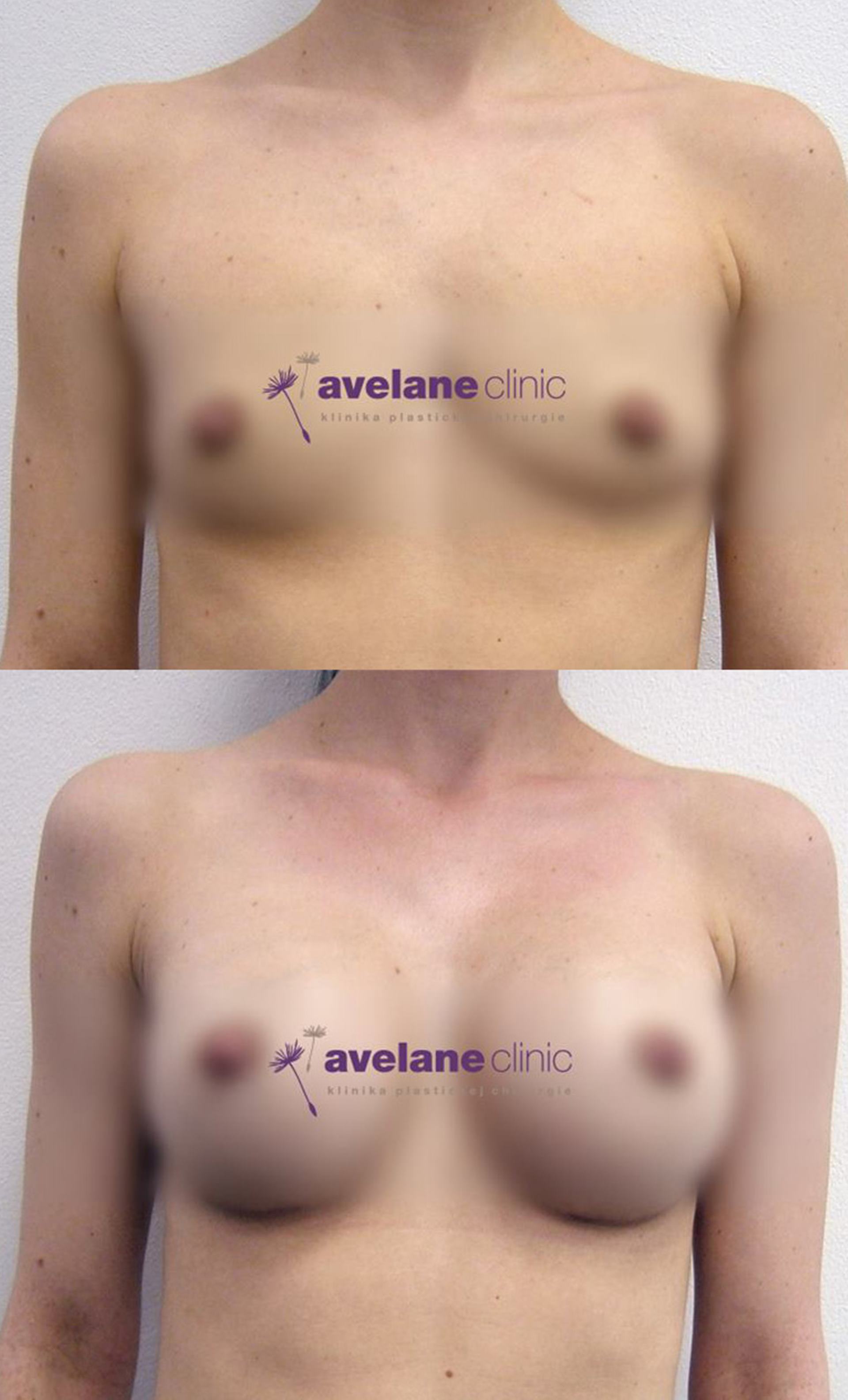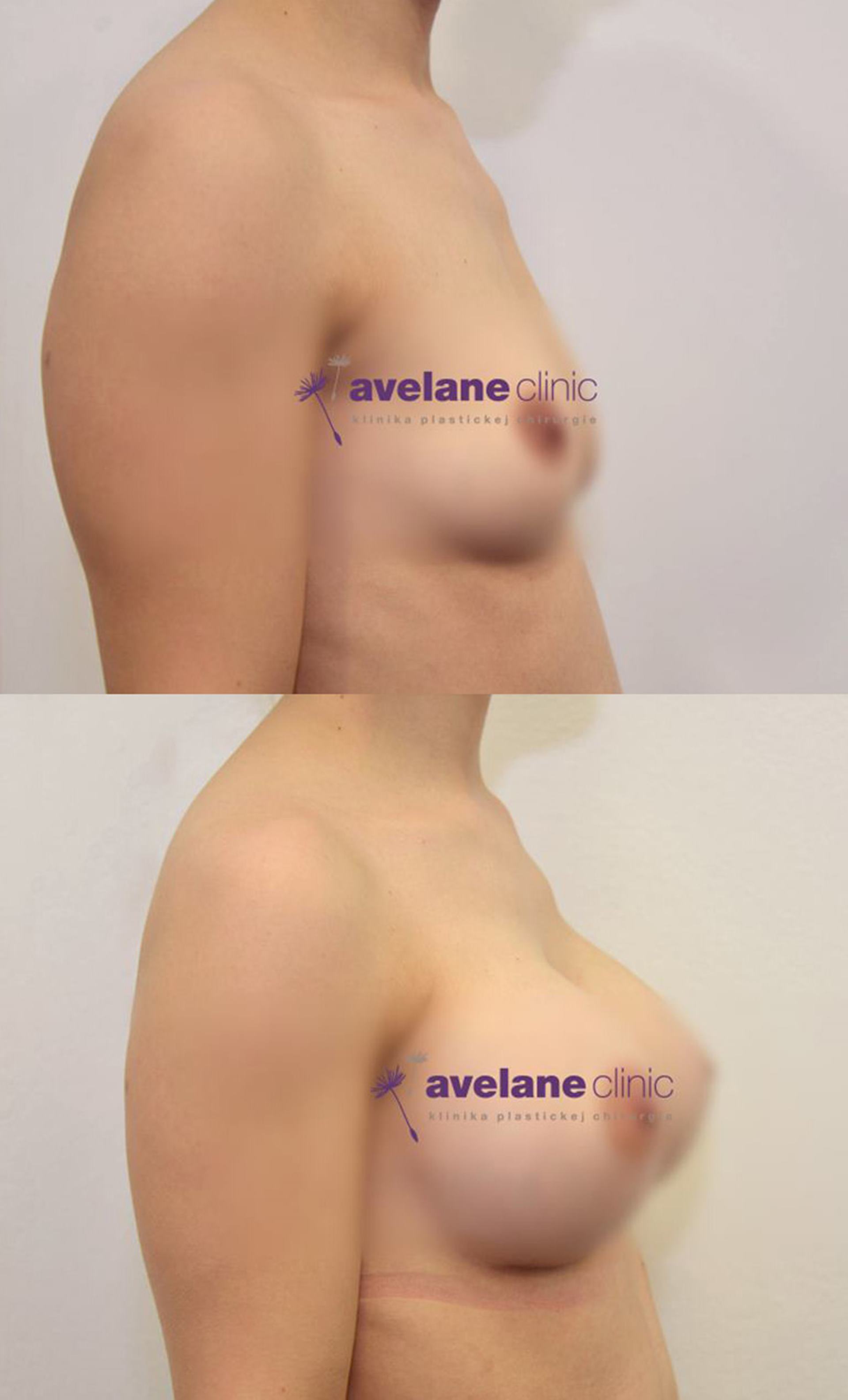 Pred a po úprave pŕs implantátmi – jemná úprava tvaru na Avelane clinic