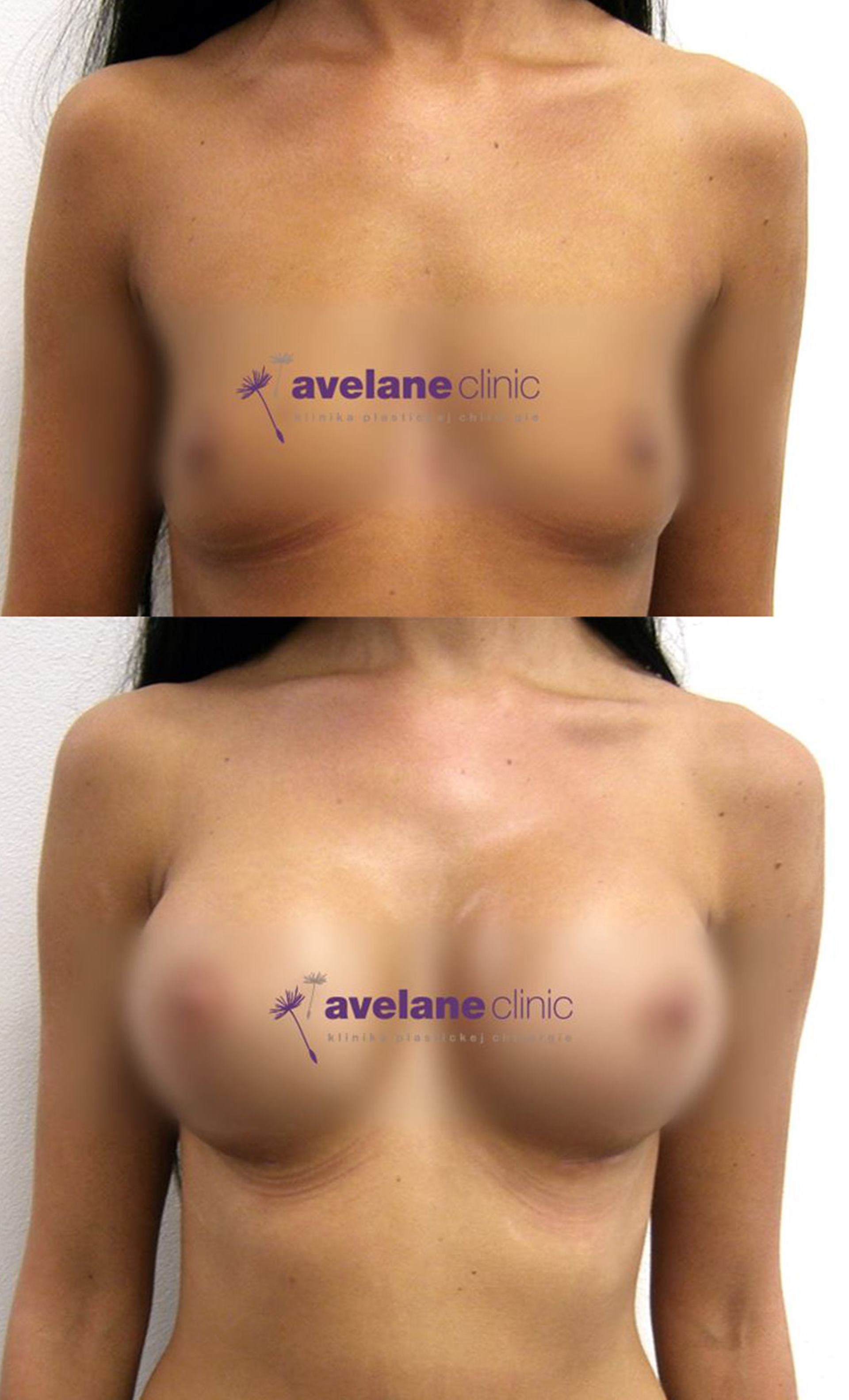 Pred a po úprave pŕs implantátmi – estetická úprava na Avelane clinic