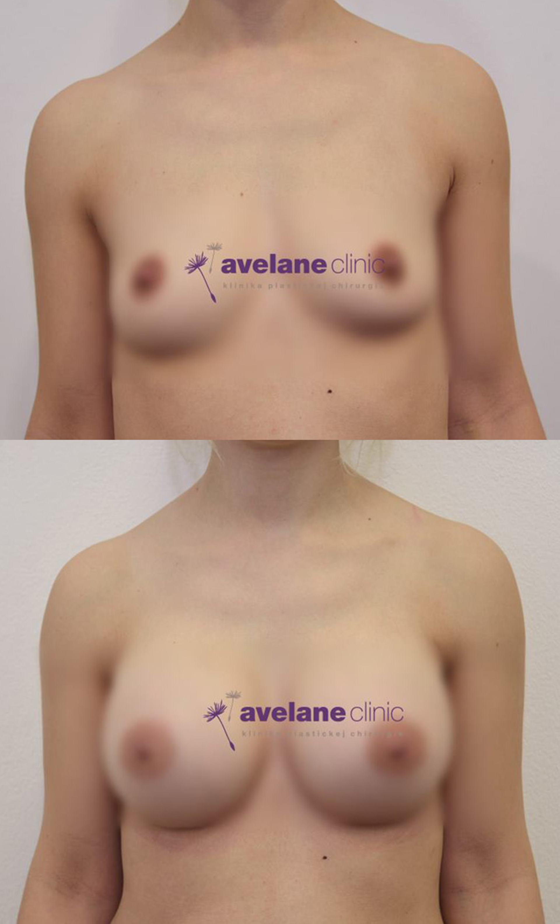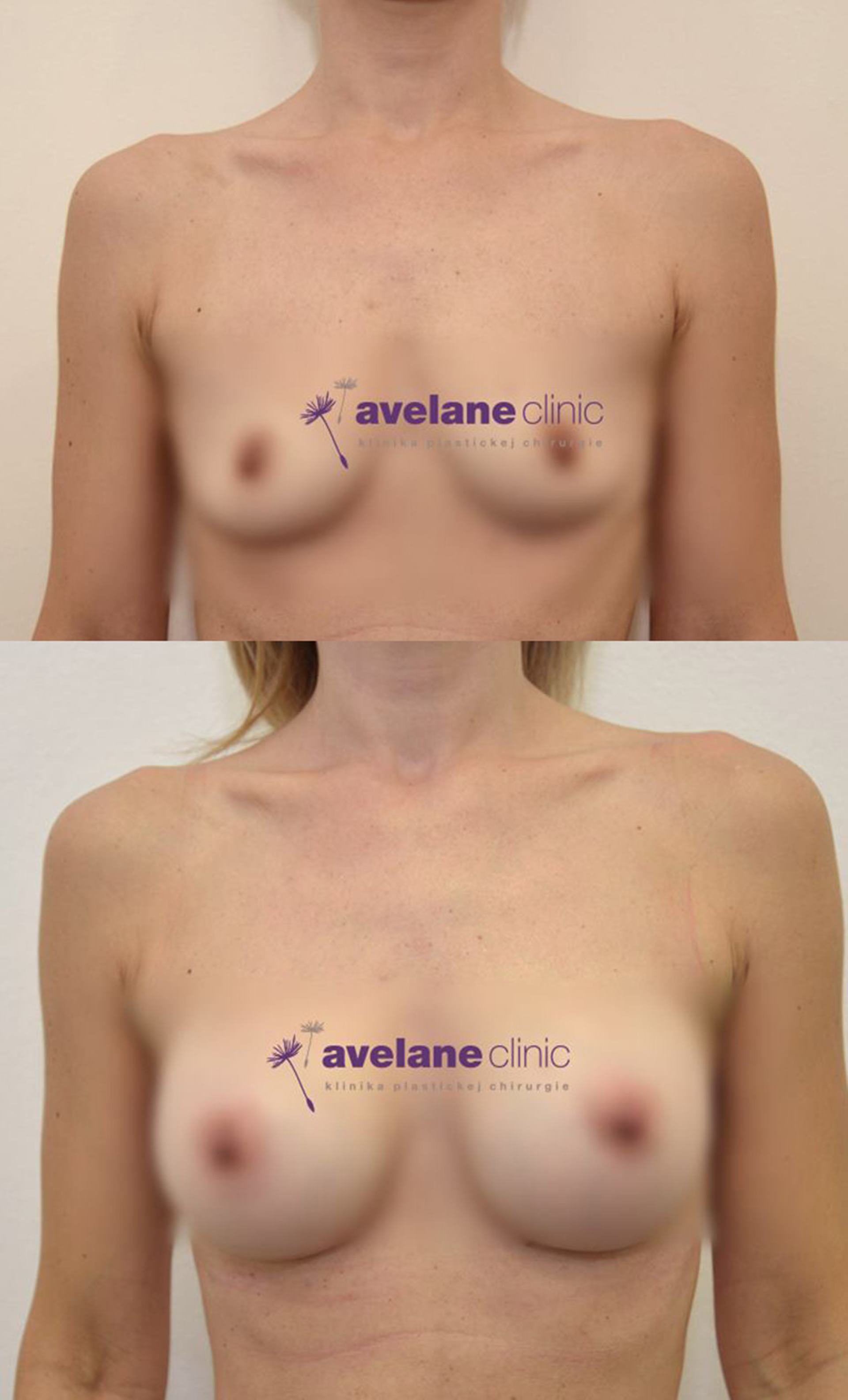 Pred a po úprave pŕs implantátmi – vyvážený a prirodzený tvar na Avelane clinic