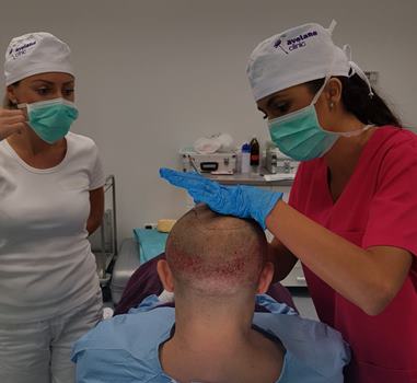 Pripravte sa na týždennú rekonvalescenciu a práceneschopnosť. Je dôležité, aby ste sa vlasov minimálne 48 hodín nedotýkali. Spať budete môcť len vo vyvýšenej polohe tak, aby ste sa nedotýkali časti, kam sme implantovali štepy. Po dvoch dňoch si môžete vlasy umyť špeciálnym spôsobom, aby ste sa nedotýkali vlasovej pokožky. Presné pokyny dostanete od lekára. Minimálne 14 dní sa musíte vyhnúť športu, chrániť sa pred slnkom.
